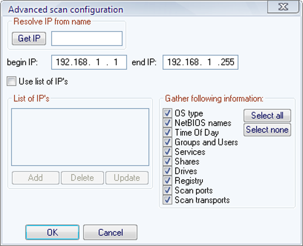 Advanced LAN Scanner is an easy, simple-to-use, high configurability network scanner for Win32/Windows. And it is fast. It is VERY fast. It uses multithreaded process of scanning, which gives it great power to scan over 100 elements every second! If used with Advanced LAN Scanner, it can scan all 655036 ports in less that minute!