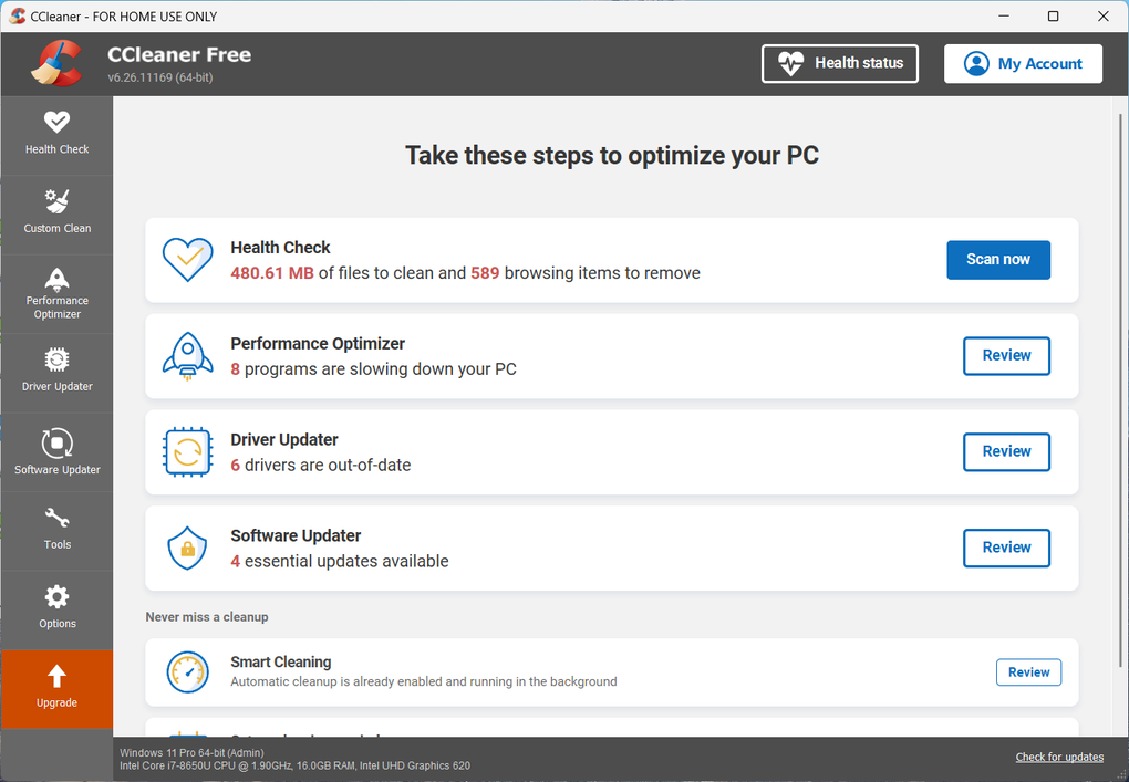 CCleaner for Windows is a free PC optimizer that frees up space on your computer by removing unnecessary files such as cookies, unused data, and temporary files. This Piriform’s programme runs regular checks and finds those elements that slow down your computer performance.