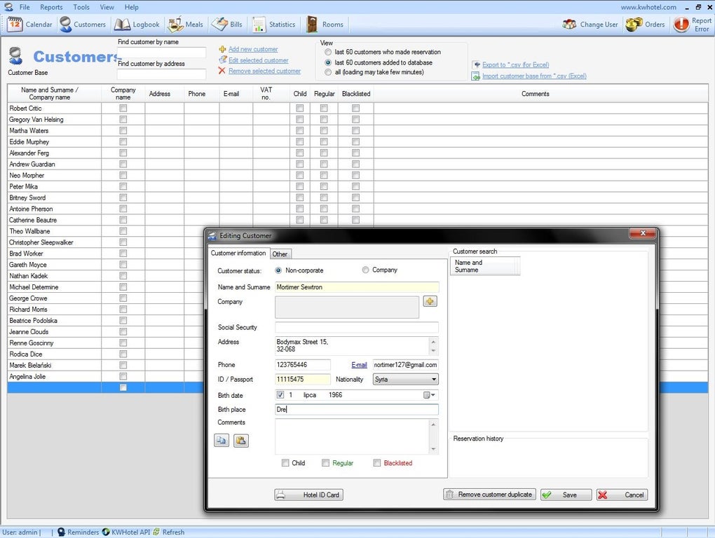 To access KWHotel free of cost, simply go to its website and enter your email id, which is given at registration. You would receive a confirmation email containing further information about registration, download and other related facilities. Subsequent reservations can be done online at a KWHotel free hotel software portal. At the portal, one can look up information regarding all current and upcoming hotel rooms that are on the reservation list. Once reservations are done, these can be booked online by providing complete contact details such as email address and telephone numbers.