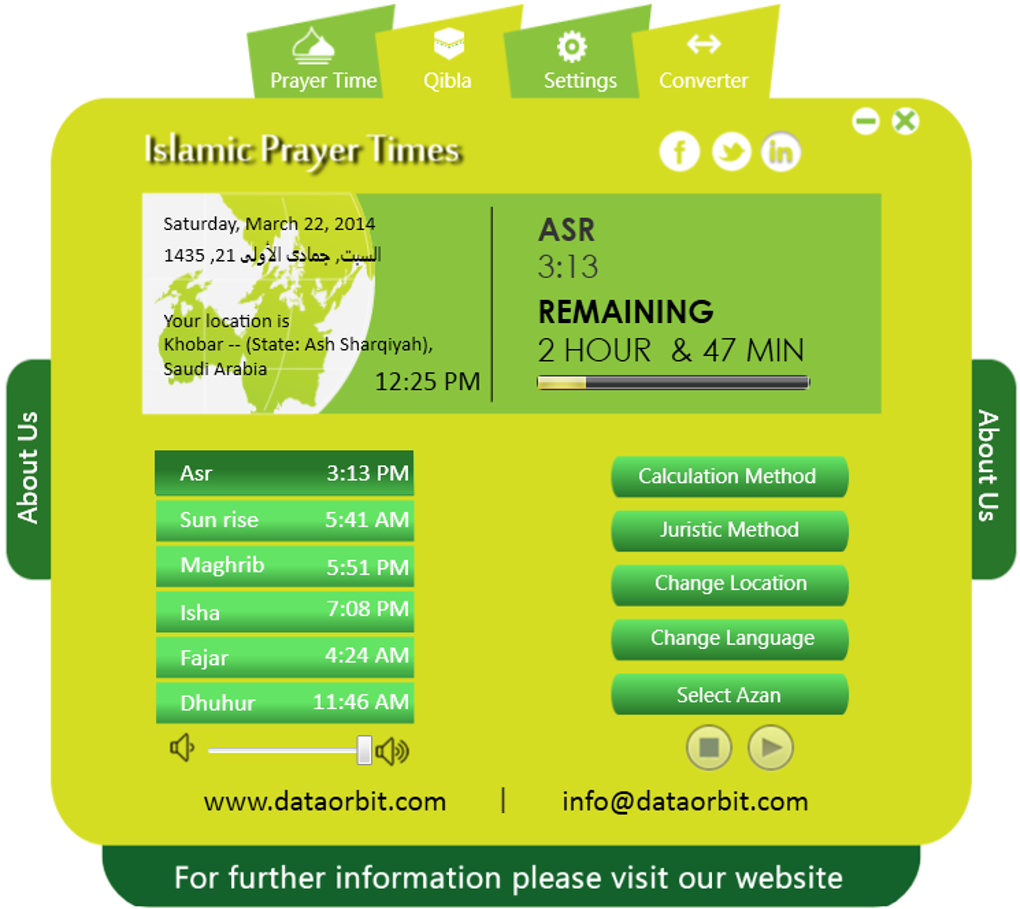Le funzionalità principali includono la fornitura degli orari per tutte e cinque le preghiere giornaliere, la possibilità di impostare avvisi personalizzati e un'apposita bussola che indica la direzione della Qiblah. Tuttavia, è importante notare che il software non supporta i sistemi operativi più recenti e non è disponibile una versione per smartphone. Attualmente, l'unica lingua disponibile è l'inglese, il che potrebbe limitare l'accesso per alcuni utenti. Non esiste nemmeno un sito web ufficiale per assistenza o ulteriori informazioni.