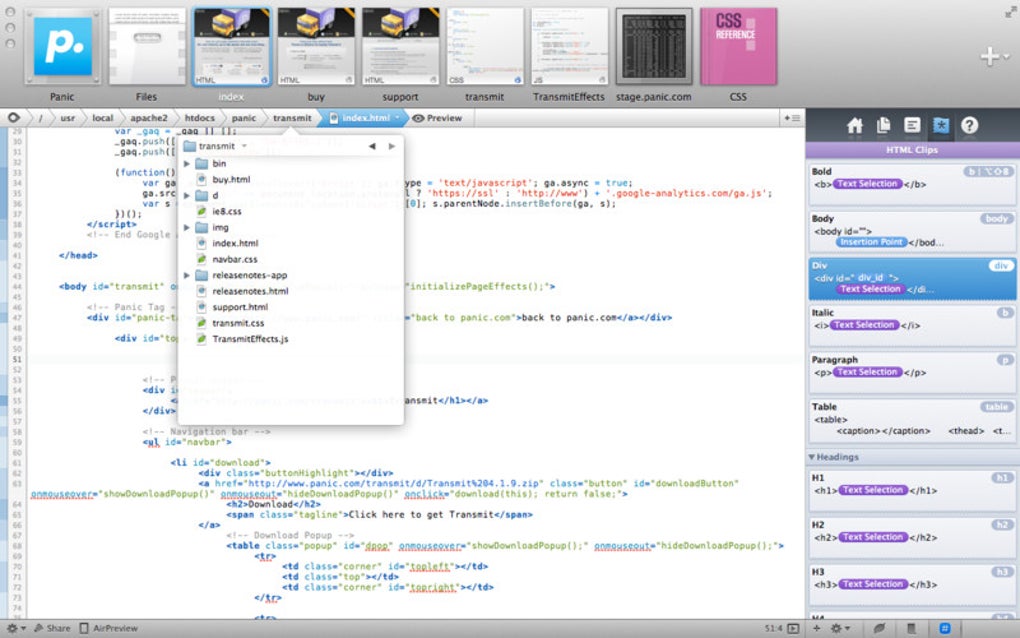 Another feature worth mentioning in Coda 2 is its built-in CSS editor. You can easily edit your CSS files while working on your project using the built-in editor. Some people who haven't used this kind of feature before might be frightened by the thought of CSS codes in their editors and just leave the file alone, but this is actually a natural reaction because most people don't know what they are doing with the special characters like $, * and; being placed immediately above the code they are editing. The built-in CSS editor is very useful for people who don't know much about CSS.