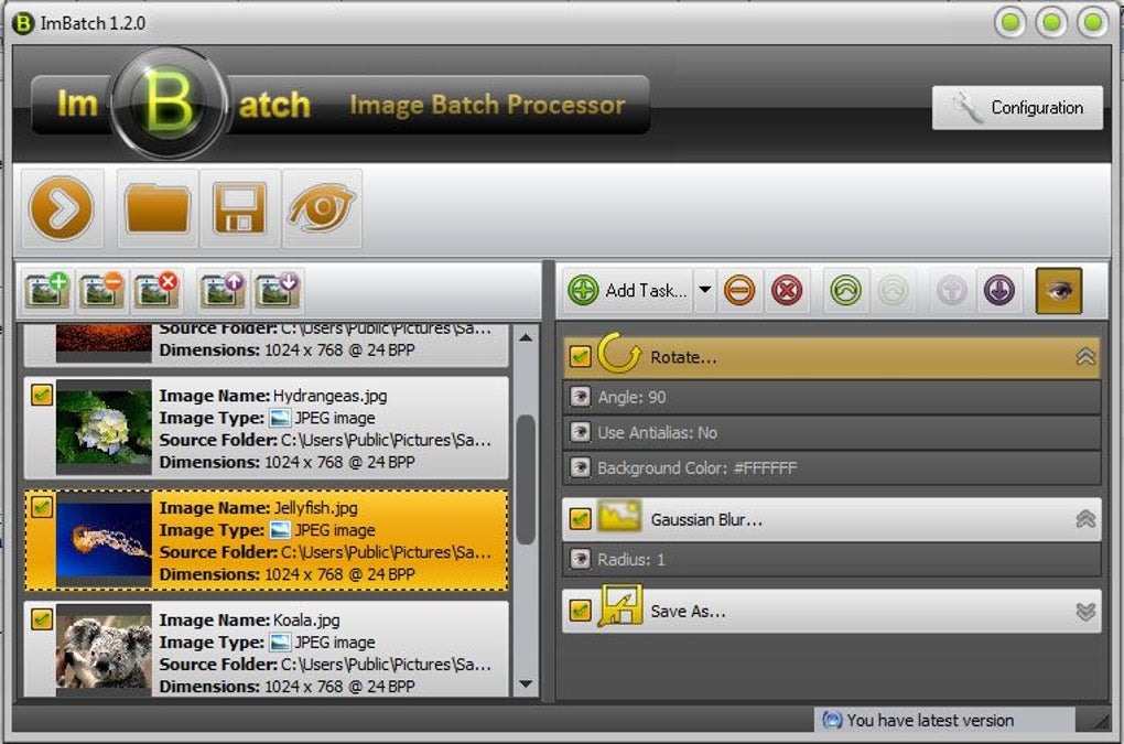 ImBatch 是一个很棒的免费程序,可让您同时处理多个图像。该软件非常易于使用,Windows 是唯一的先决条件。基本上,将照片拖放到桌面上,选择它们,然后将更改添加到桌面上的适当位置。然后,Windows 还会要求您选择要对每个图像执行的操作。选择“打印屏幕”以将每个图像打印为新页面,或按“打印”以 PDF 文件的形式保存您的选择。